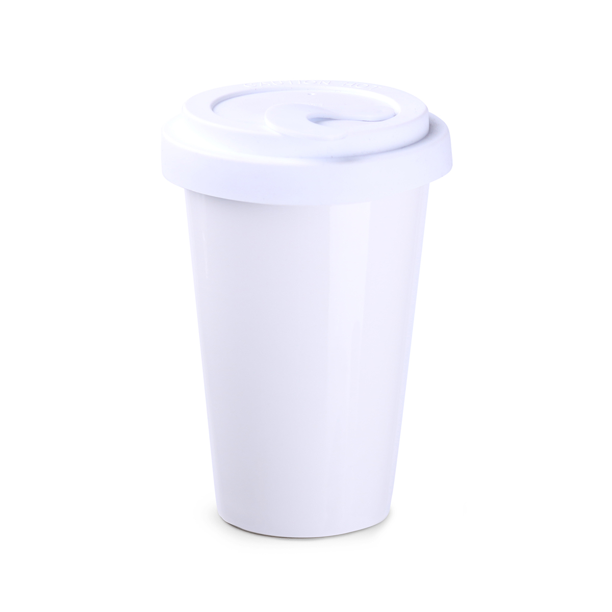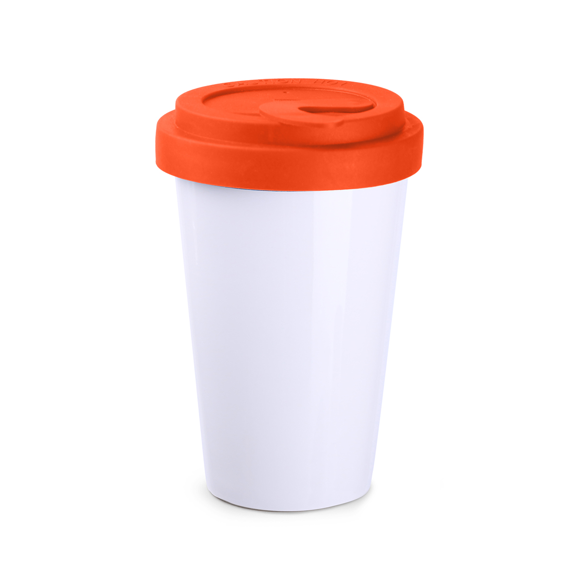 A poreclain advertising mug with polymer cover, which provides protection from accidental spillage. The model is dedicated to active persons and traveling enthusiasts. Owing to the unique internal structure of double porcelain walls, this mug allows for improved thermal insulation. The cover is available in 8 colors: white, orange, red, green, navy blue, brown, black and gray.